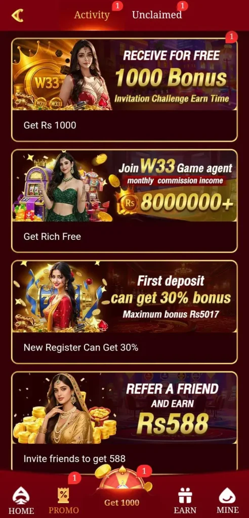 - Invite Friends – Many earning apps, including W33 Game, offer referral bonuses for inviting friends to join the platform.